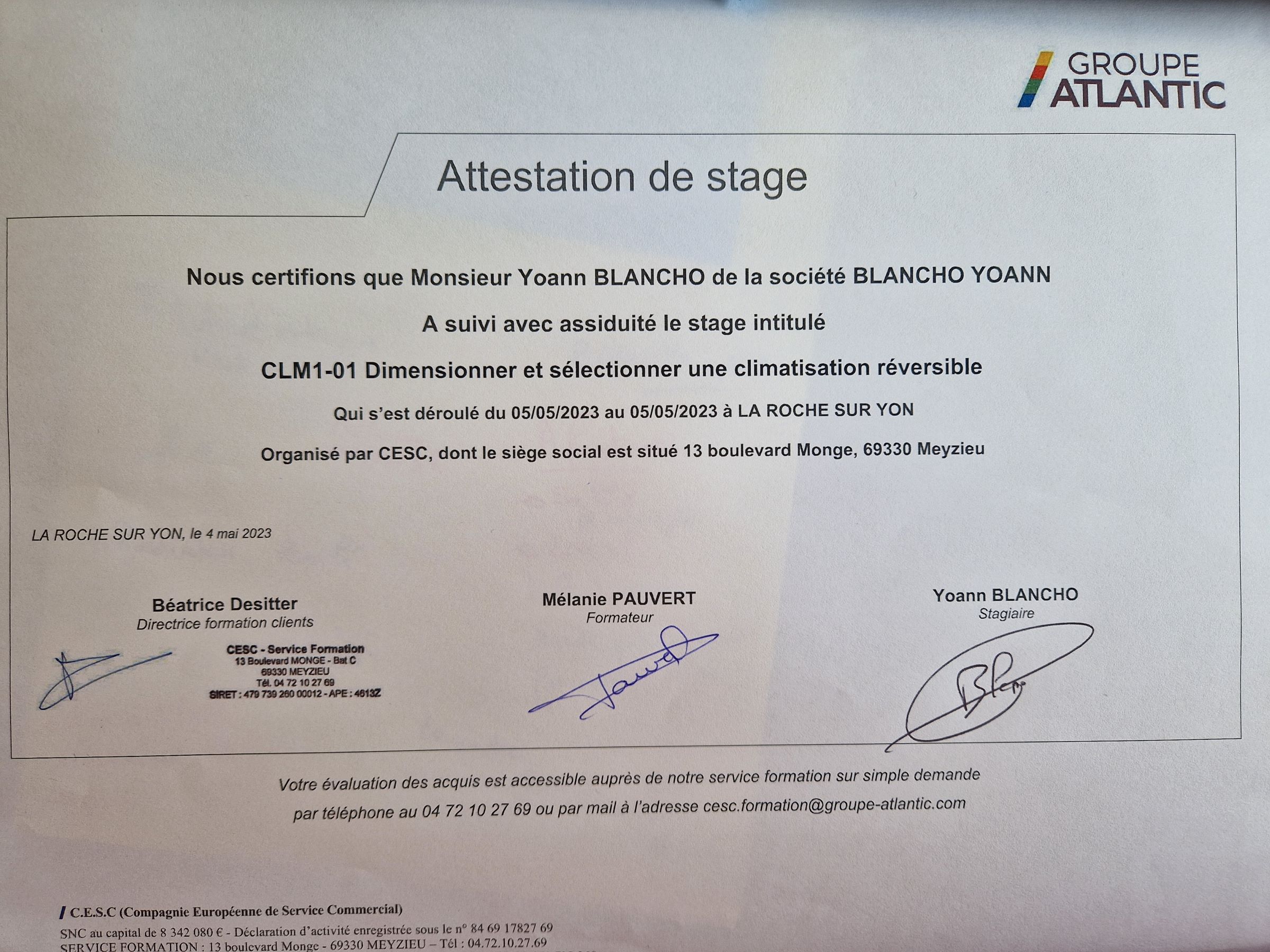 attestation clim atlantic
